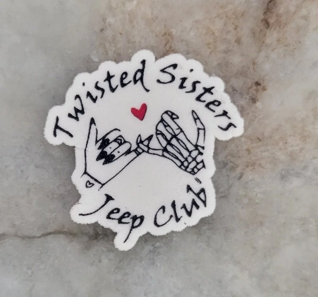All Twisted Sisters merchandise is made to order. Please allow 2-3 weeks for processing before shipping. Thanks for riding with us! Categories: All Clothing Flag Bags Earrings Keychain T-Shirts Jeep Accessories Hats Pins All | Clothing | Flag | Bags | Earrings | Keychain | T-Shirts | Jeep Accessories | Hats | Pins | Patched Member Shirt $20.00 Senoia Jeep Fest 2025 Patch $3.00 3 inch TS Decal $8.00 Dog Bandana from $3.00 Patched Member Shirt $20.00 JAS patch $3.00 Twisted Sisters Sweatshirt from $30.00 Twisted Forces Shirt from $20.00 Wine glass koozie $5.00 Twisted Sisters Hoodie $35.00 Star Hat $12.00 Ducking Bag $16.00 TS Umbrella $14.00 November Twisted Sisters T-Shirt from $20.00 Twisted Sisters Metal Sign $5.00 Wristlet $10.00 Ducking Bag With Tagger Combo $32.00 Double Sided Flag 3x5 Ft $40.00 Duck Tagger $18.00 Twisted Sisters T-Shirt from $20.00 Twisted Sister Jeep Badge $22.00 Twisted Sisters Jeep Banner $13.00 Athletic Pony Tail Hats $12.00 Cup Wallet Sale Price: $4.00 Original Price: $8.00 Sale This Girl Loves Her Jeep Hat $12.00 Twisted Sisters Fanny Pack Sale Price: $4.00 Original Price: $8.00 Sale Room Key Keychain $2.00 Chapstick key chain $3.00 Tassel Twisted Sister Keychain $2.00 Lapel Pin $2.00 Twisted Sisters Logo Dangle Earrings $4.50 Twisted Sisters Stud Earrings $3.50